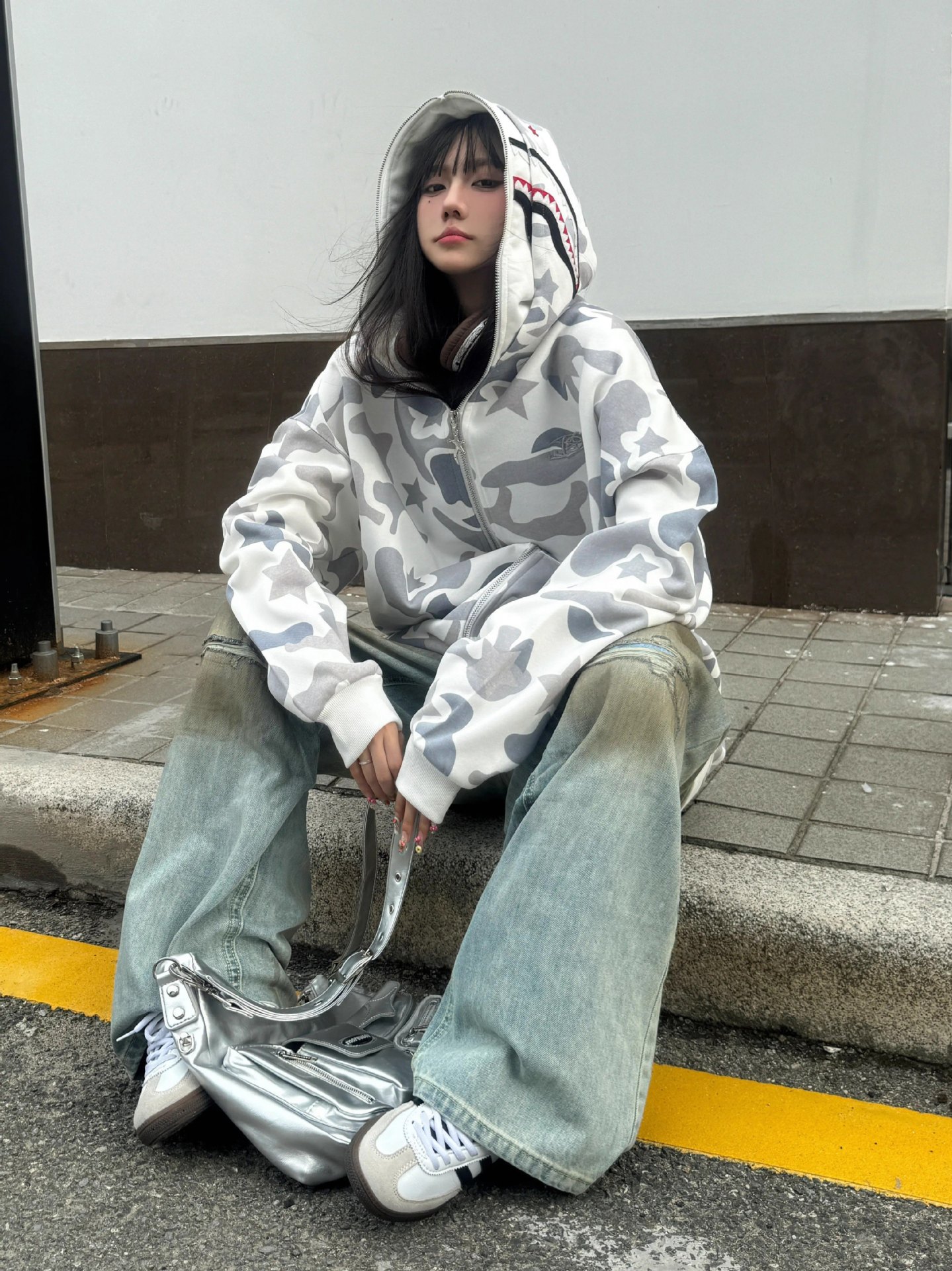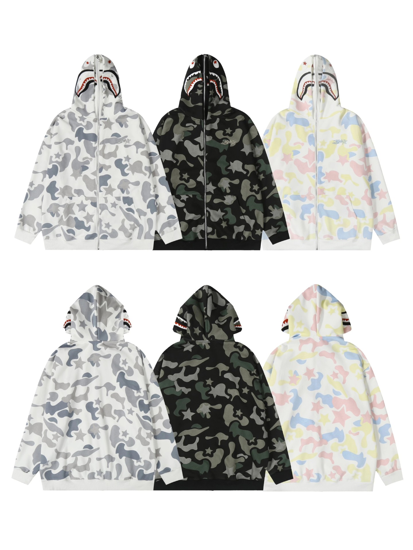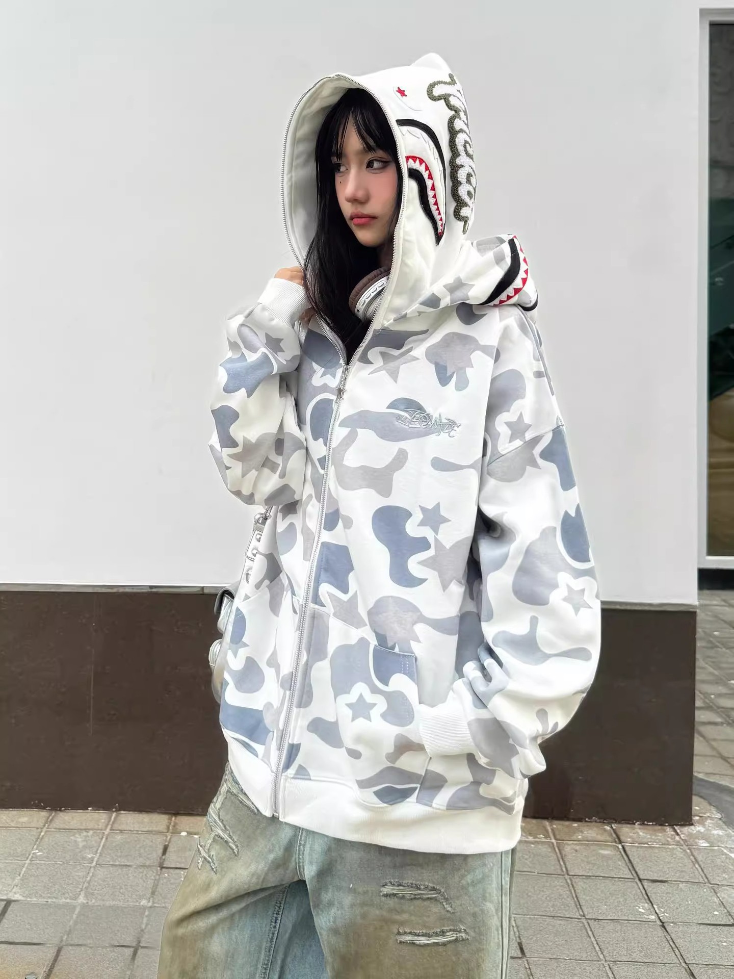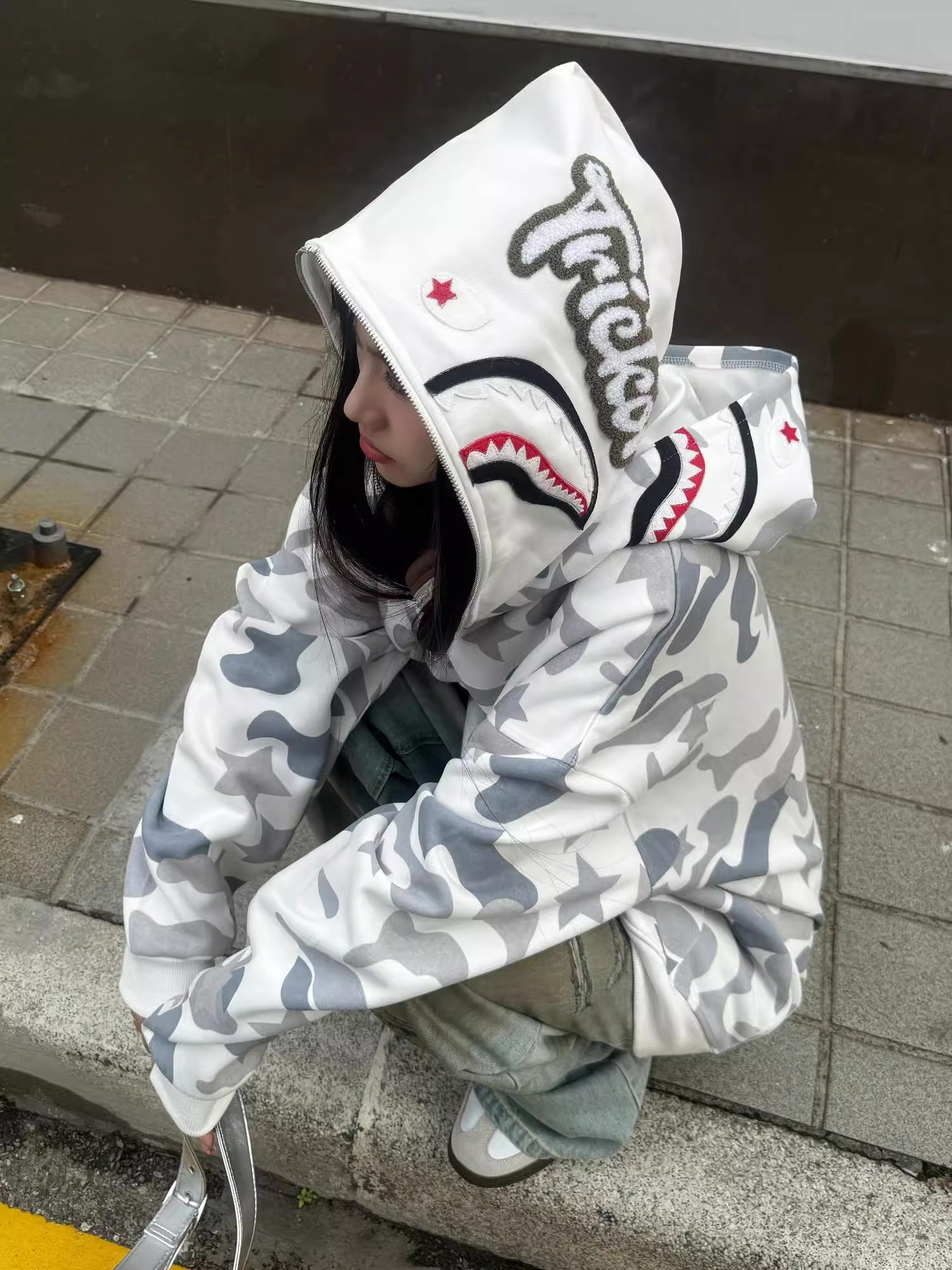Custom Graffiti & Shark Mouth Hooded Jacket – Men's Streetwear Fashion